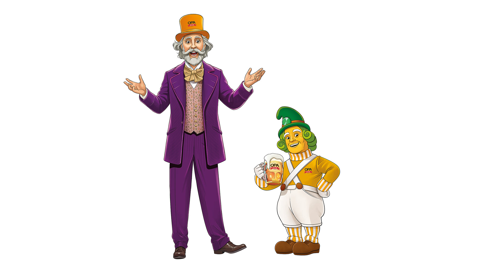 Ilustração para painel instagramável da Fantástica Fábrica de Cervejas Opa Bier.