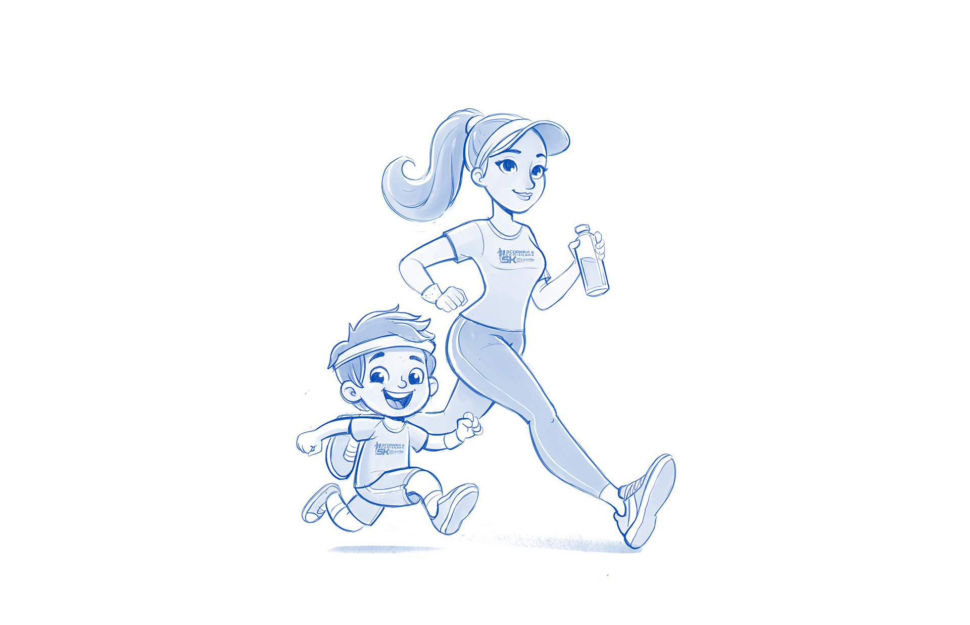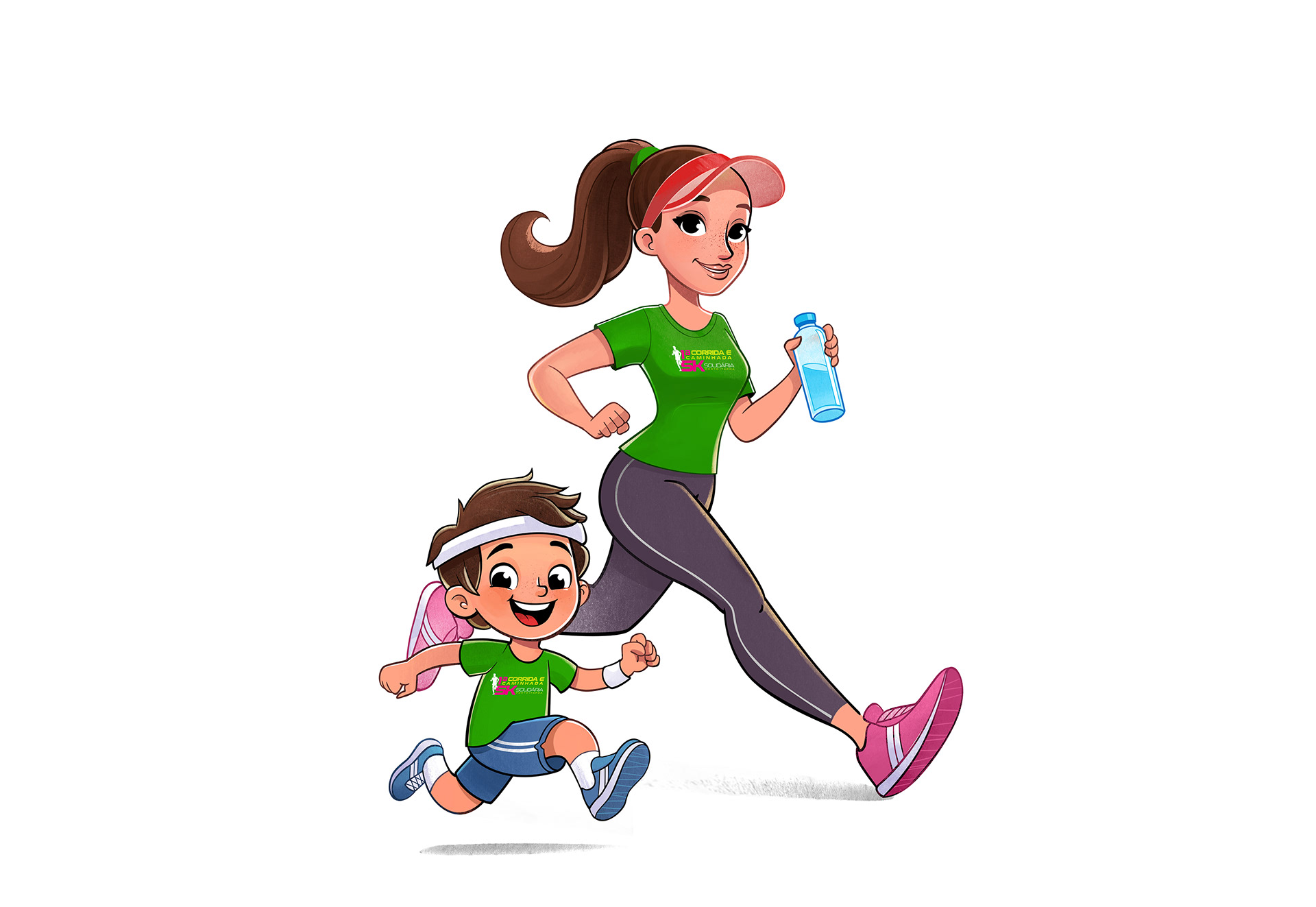 Ilustração de personagens para campanha corrida e caminhada solidária.