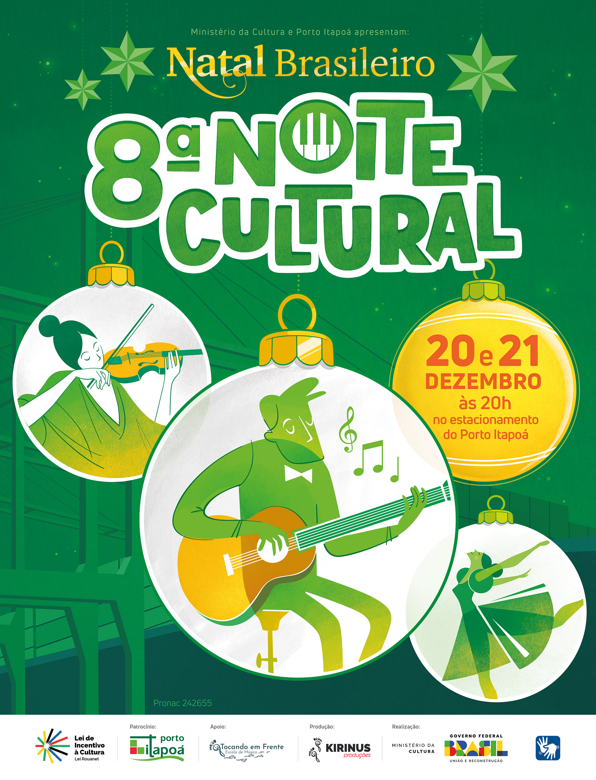 Identidade visual e ilustrações para a 8 Noite Cultural.