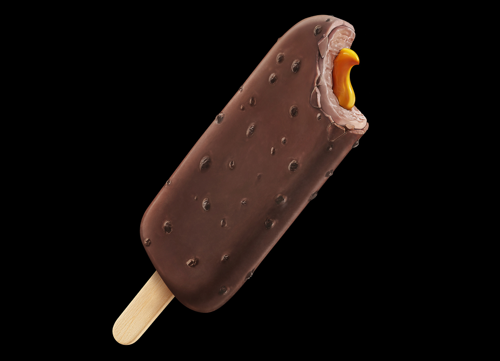 Ilustração picolé chocolate com recheio de caramelo.